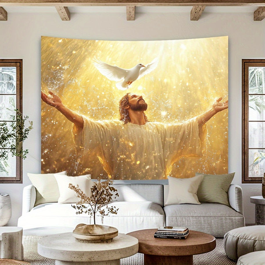 1 Elegant Dove & Jesus Art Tapestry - Serene & Radiant Religious Wall Decor