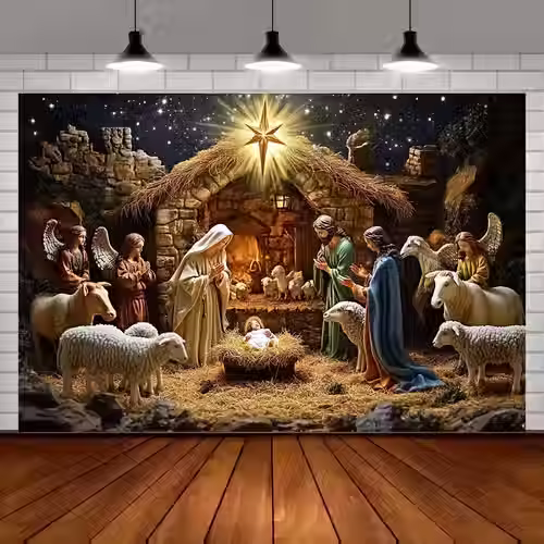 2D Christmas Jesus Birth Scene Backdrop Xmas Party Decor Nativity Photography